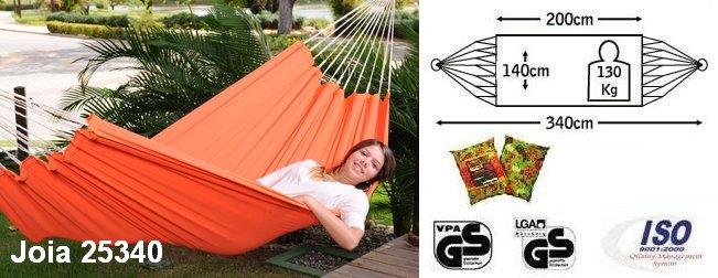 Zawartość opakowania: hamak, torba Wymiar: 40x30x24 cm Waga: 1,0 kg